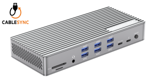 תחנת עגינה Thunderbolt 4 Displaylink מבית CableSync עם 20 חיבורים המסוגלת לתמוך עד 5 מסכי מחשב במערכת הפעלה ווינדוס ועד 3 מסכי מחשב במערכת הפעלה מאק