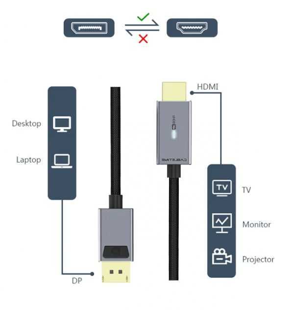 | הערה | כיוון הכבל: DisplayPort במחשב או בתחנת עגינה, HDMI בתצוגה |