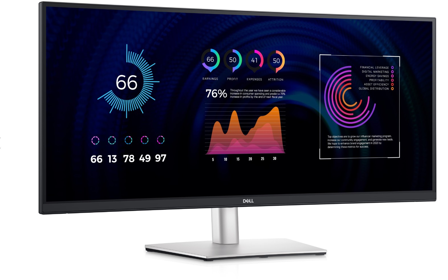 | Features | Dell Easy Arrange, Low Blue Light technology, 3-sided bezeless, Dell ComfortView Plus, flicker-free panel |
