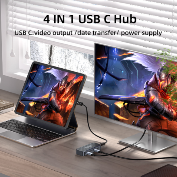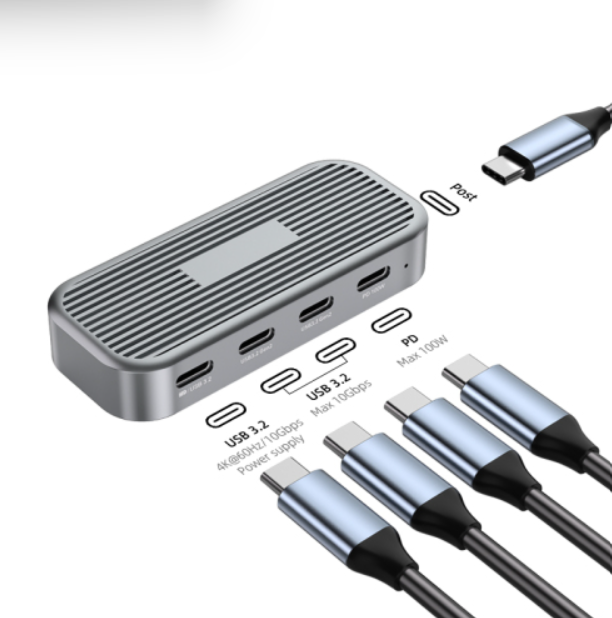 מפצל 4 יציאות USB3.1-A בחיבור USB-C למחשב. כולל כבל USB3.1-C לחיבור המפצל למחשב, תומך 10Gbps.
