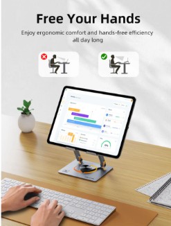 • Ergonomic Design – Elevates your device to eye level for better posture and comfort.